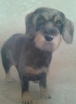 2014Speciaal in opdracht geschilderd ruwharig teckeltje.
