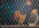 2013Kip en Haan achter gaas. Compleet met zwart/zilveren baklijst
