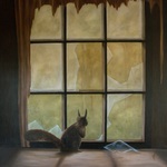 2013In dubio staat het eekhoorntje bij het gebroken venster. Zal hij zijn oude vertrouwde maar verwaarloosde wereldje durven te verlaten? compleet met zwarte baklijst